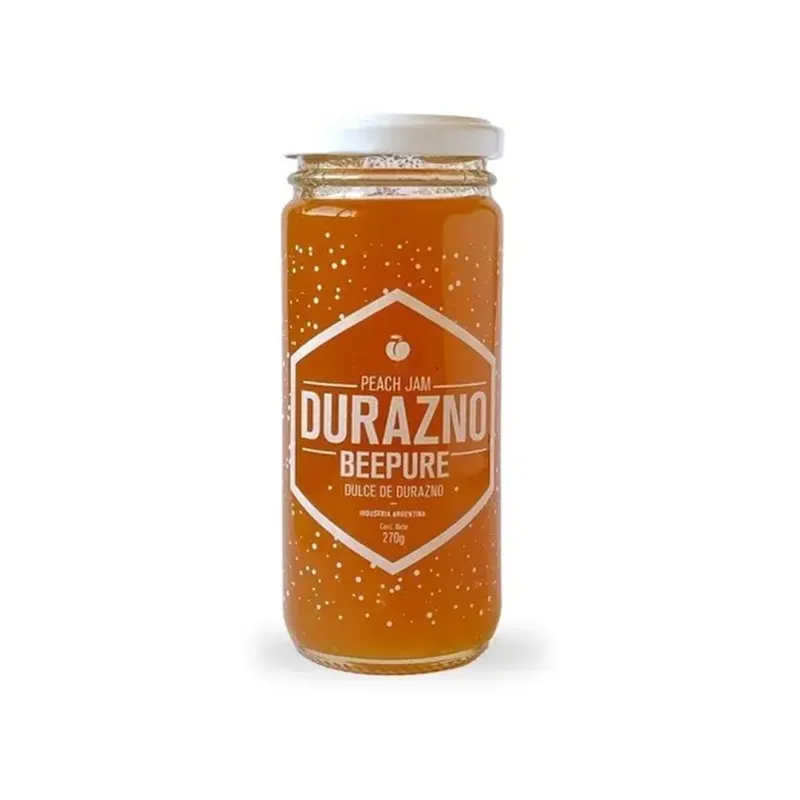 El dulce artesanal de durazno BEEPURE está preparado con fruta entera.