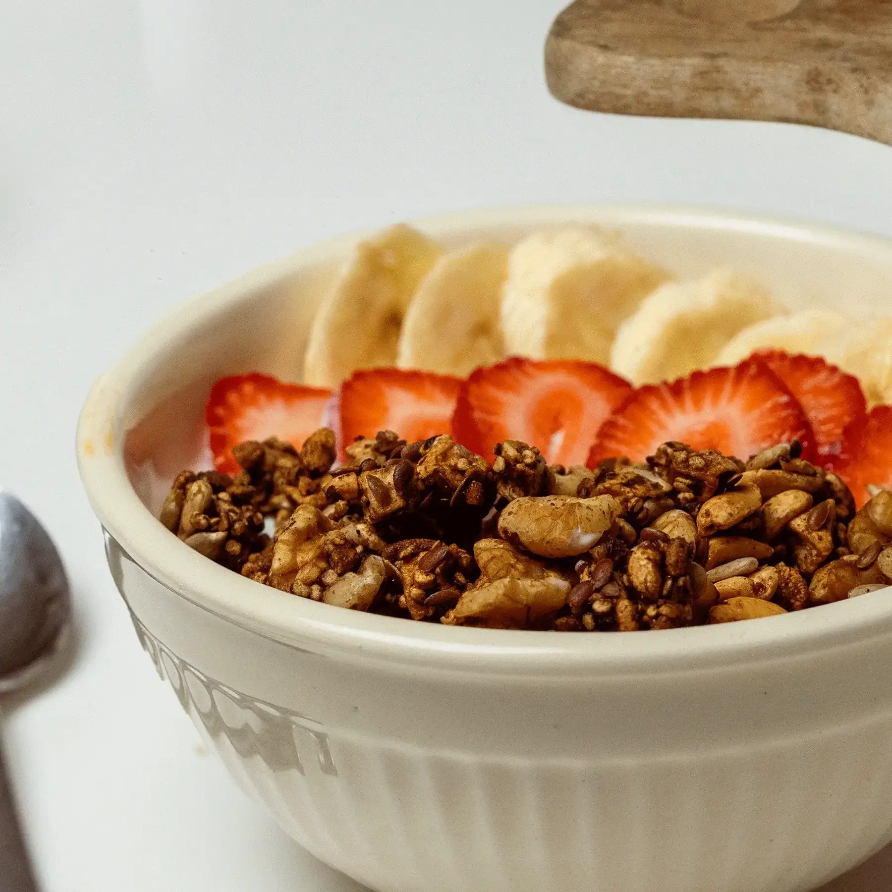 Granola sin gluten a base de frutos secos, semillas y muchas texturas.